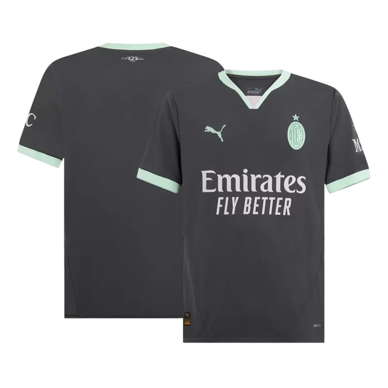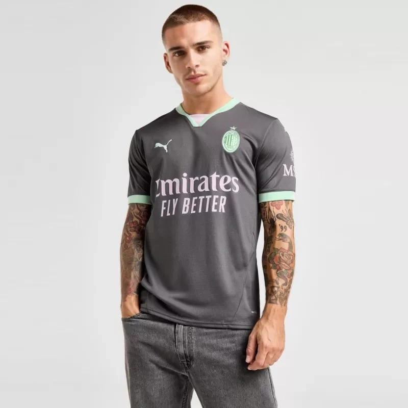 Scopri la maglia replica della terza divisa AC Milan stagione 2024/2025, pensata per i veri tifosi rossoneri e gli appassionati di calcio. Realizzata al 100% in poliestere tecnico, questo tessuto leggero e traspirante ti garantisce una sensazione di freschezza e comfort anche durante le giornate più calde o le partite più intense.