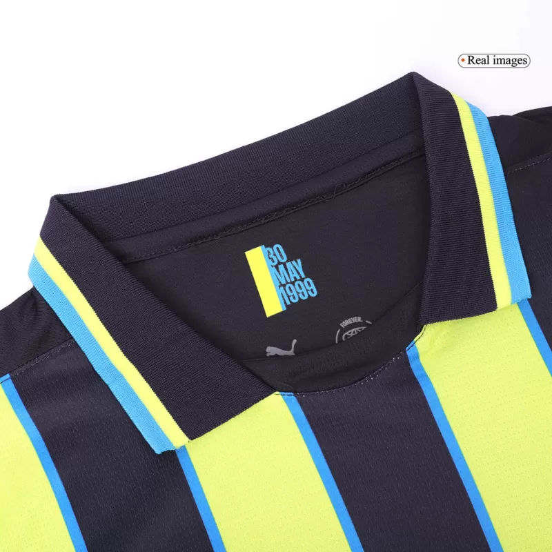 Design celebrativo: Colore nero con strisce verticali giallo neon, ispirato alla maglia del 1999, per commemorare una delle partite più iconiche nella storia del club.