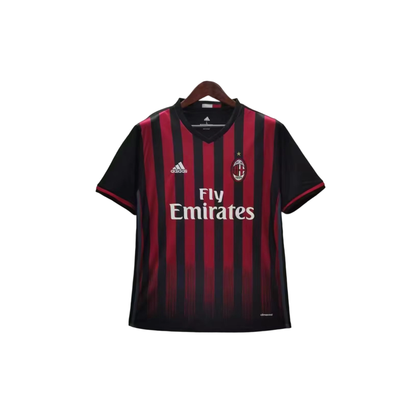 La maglia home dell’AC Milan per la stagione 2016-17 si distingue per il suo stile grintoso e moderno: le iconiche strisce verticali rossonere sono reinterpretate con un effetto sfumato, dove il rosso scuro si fonde con il nero profondo per creare un look aggressivo e contemporaneo.