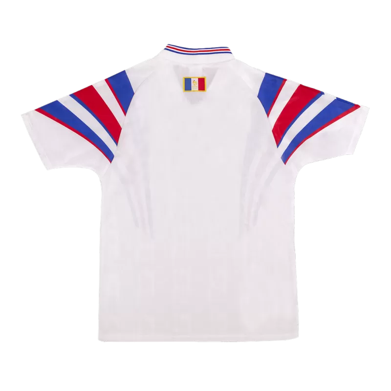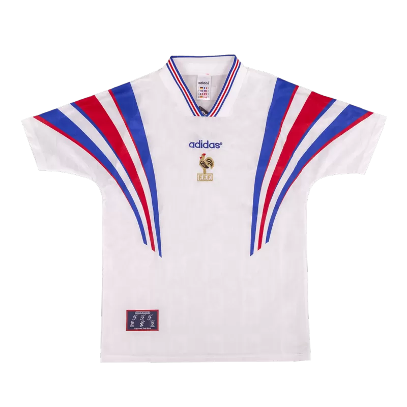 Rivivi la magia del calcio anni ’90 con la maglia replica trasferta Francia 1996 – bianca. Un capo imperdibile per veri tifosi e collezionisti, fedele allo stile originale indossato dalla nazionale francese.
