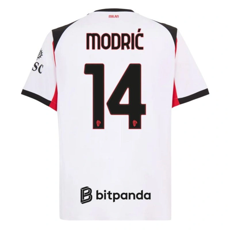 La Maglia da Calcio AC Milan Trasferta 2025‑2026 è un mix perfetto tra stile tradizionale e spirito innovativo, resa unica dalla stampa del nome Modrić e il numero 14, il simbolo del nuovo maestro croato in rossonero. Il kit, firmato Puma, è caratterizzato da una base pulita bianco ghiaccio con eleganti inserti rossoneri su colletto e polsini, in omaggio alle divise anni ’80–’82.