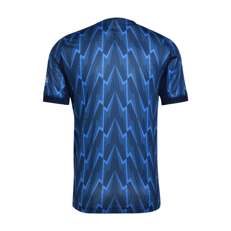 La maglia trasferta Arsenal per la stagione 2025-2026 è un omaggio ai gloriosi anni ’90, in particolare alla leggendaria divisa 1995-96, uno dei capolavori del club. Il blu navy intenso, arricchito da un audace motivo a fulmine in blu reale, richiama l’energia e la passione di quella stagione storica.