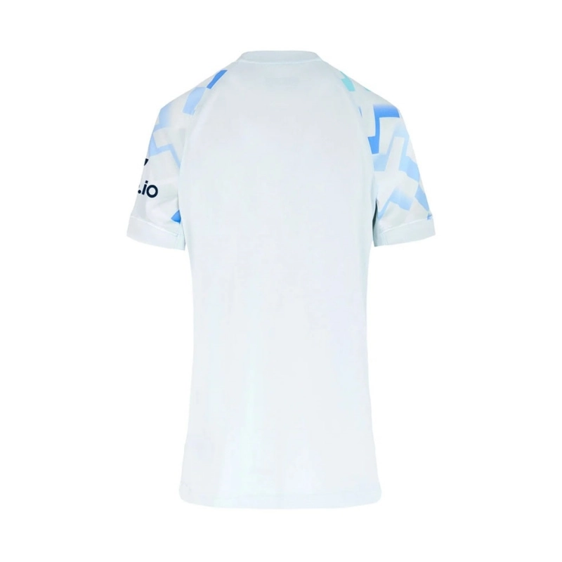 La maglia away donna dell’Inter Milan per la stagione 2025-2026 presenta un design fresco e luminoso, con base bianca arricchita da dettagli blu che richiamano la tradizione nerazzurra in modo moderno e raffinato.