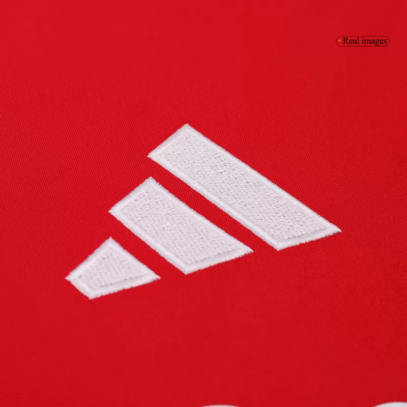 La nuova maglia dell’Arsenal 2024/25 torna alle origini con il classico design rosso e bianco, simbolo della tradizione del club. Il corpo rosso brillante è abbinato a maniche bianche pulite, mentre dettagli dorati o neri (in base alla versione) aggiungono un tocco moderno ed elegante.