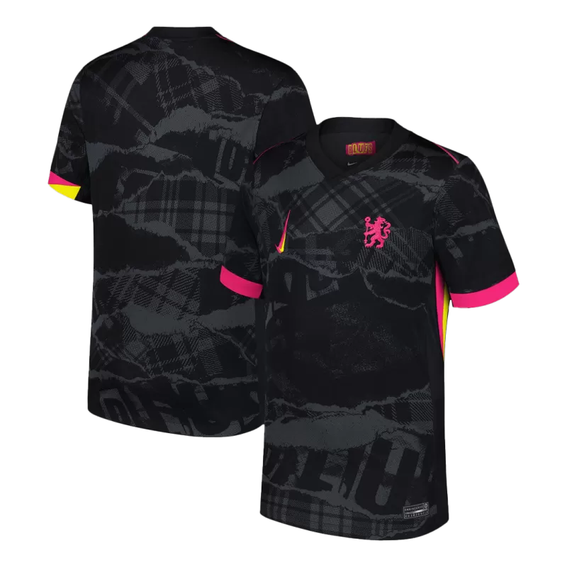 Scopri la terza maglia Chelsea 2024/25, un mix elegante di nero intenso e dettagli moderni, pensata per chi vive il calcio con grinta e stile.
